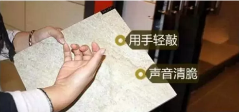 將水滴在瓷磚背面,水散開后浸濕的慢的瓷磚密度大,視為上品;
