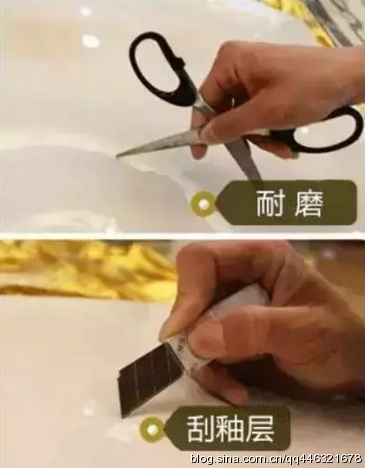 我們只需拿起手中的利刀或鑰匙,往瓷磚表面刮,看看是否會把瓷磚的表面的釉層刮掉,如果連這樣的小小的刻劃也不能承受,質(zhì)量可想而知。